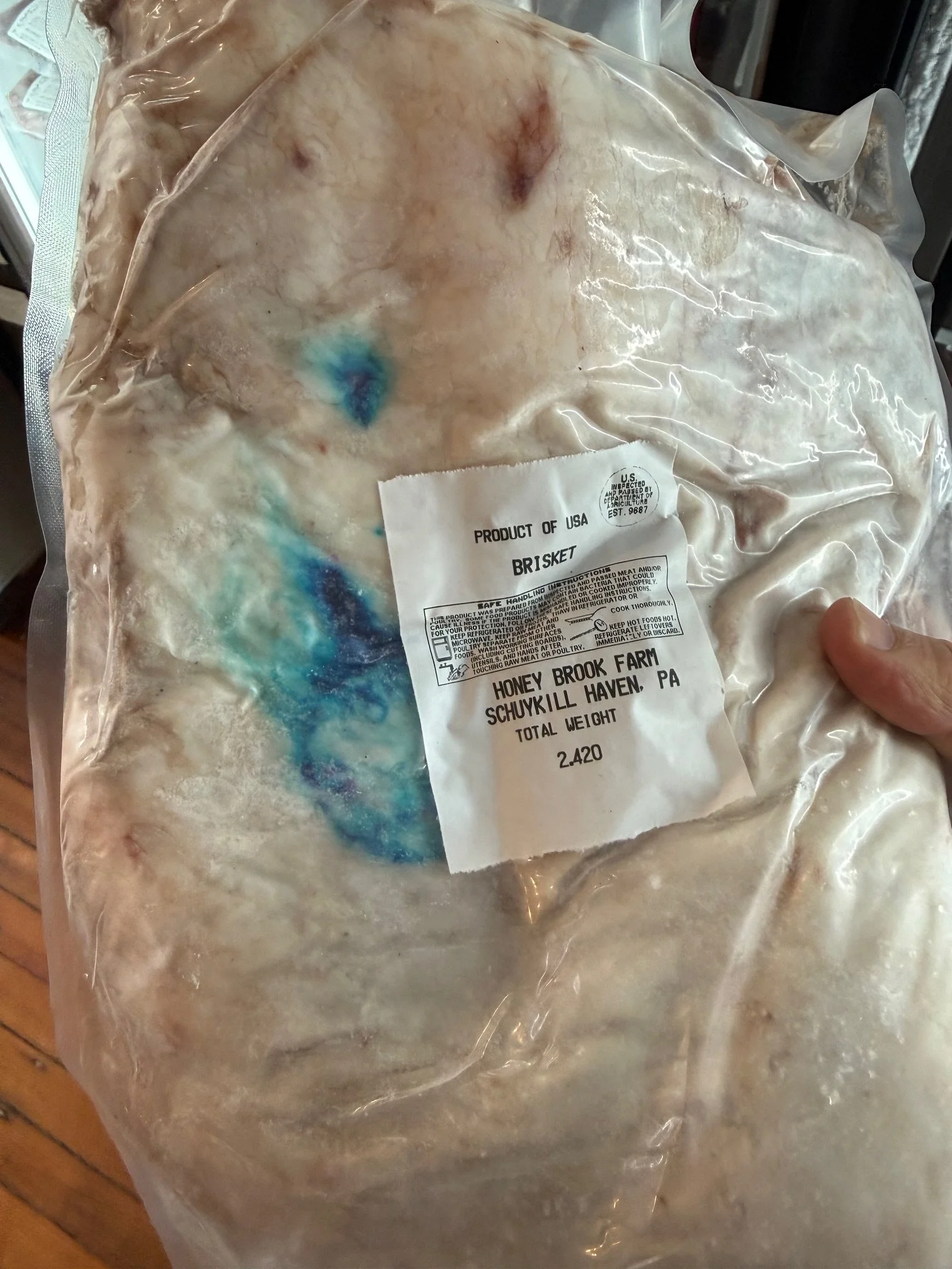 For a couple months, in the back of the freezer, there's been sitting a brisket with purple marks on it. It doesn't look very appetizing. In fact it looks as if it's gone bad: